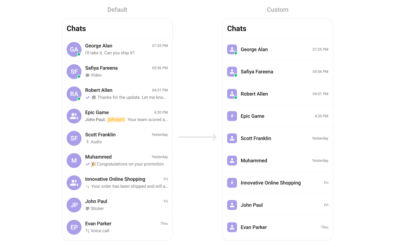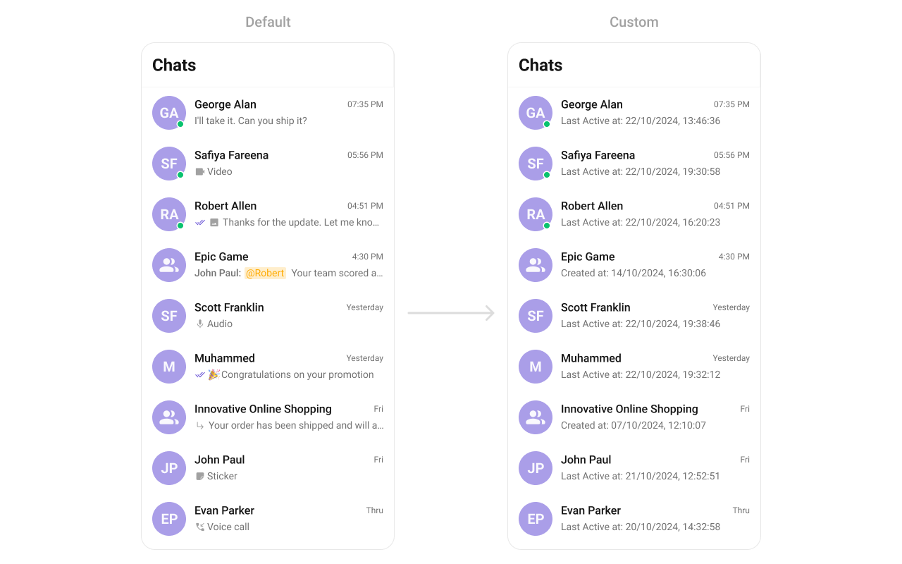 • Customizing the Last Message Display – Modify how the last message appears, including text styling, truncation, or emoji support.